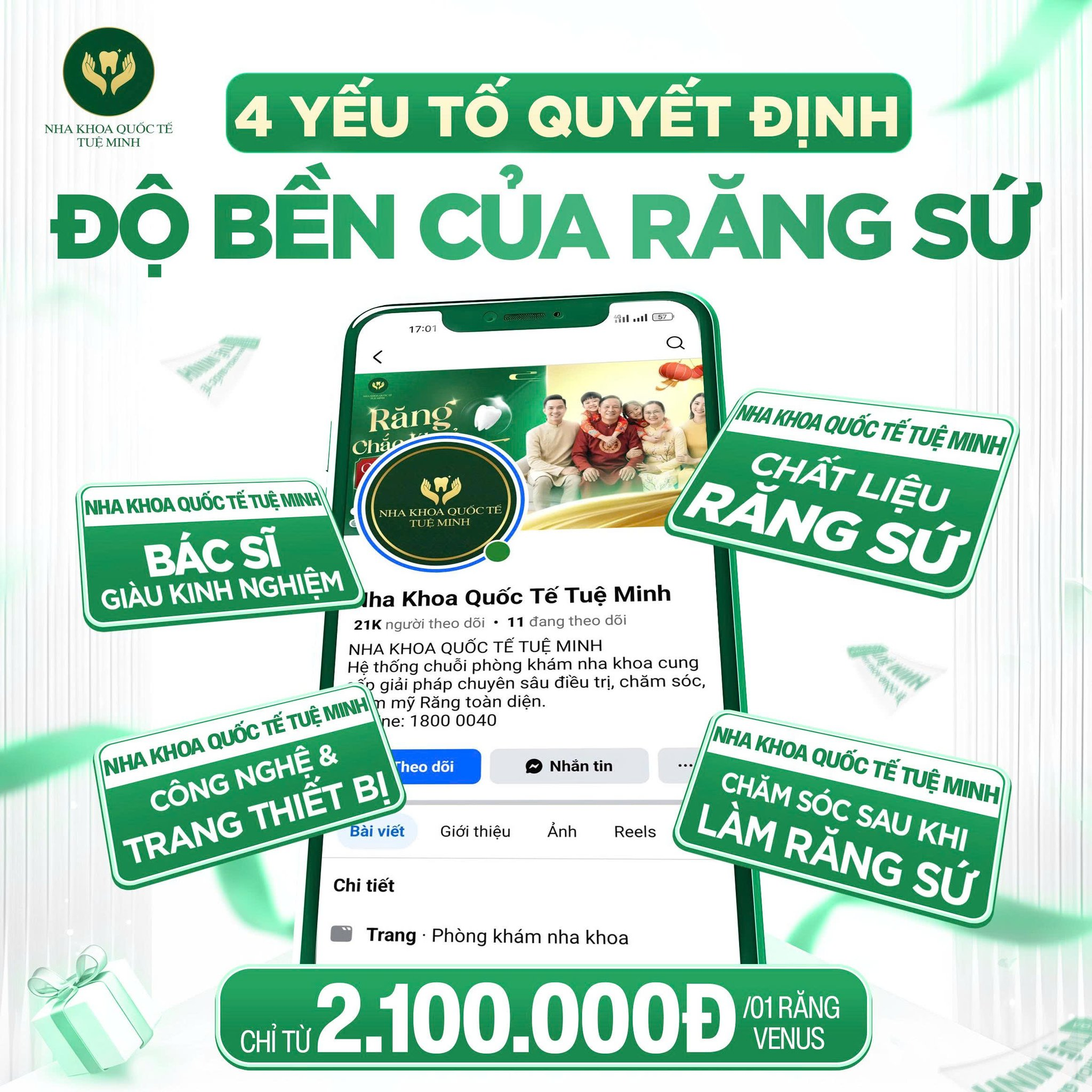 Nha Khoa Quốc Tế Tuệ Minh là địa chỉ được nhiều khách hàng tin tưởng khi lựa chọn dịch vụ răng sứ thẩm mỹ nhờ hội tụ đầy đủ các yếu tố quyết định độ bền của phục hình.