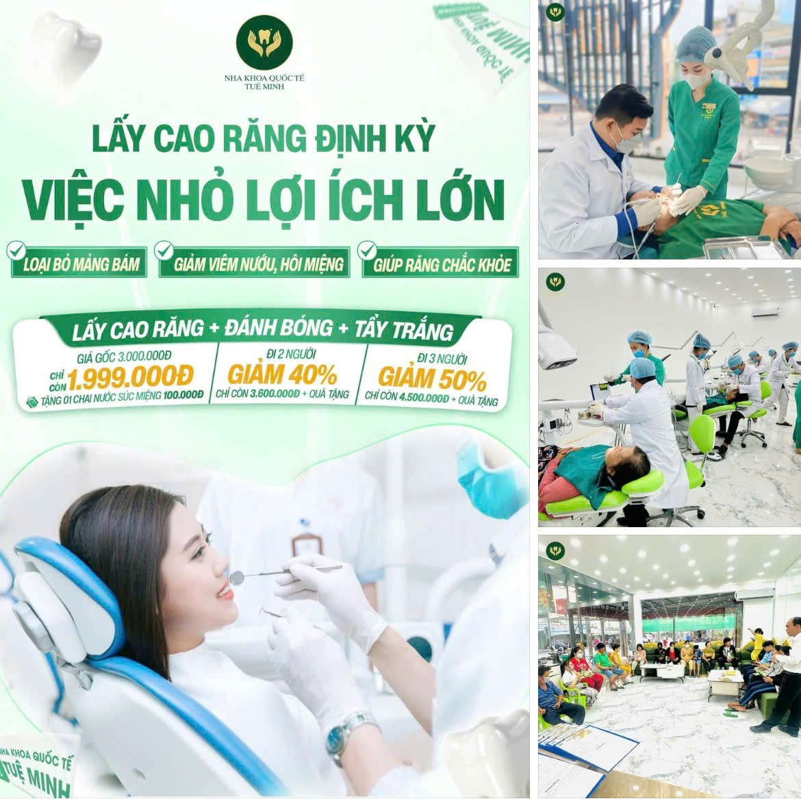 Nhằm mang đến giải pháp lấy cao răng hiệu quả và tiết kiệm, Nha Khoa Quốc Tế Tuệ Minh triển khai combo chăm sóc răng miệng trọn gói, giúp làm sạch – cải thiện thẩm mỹ – bảo vệ răng toàn diện chỉ sau một buổi.