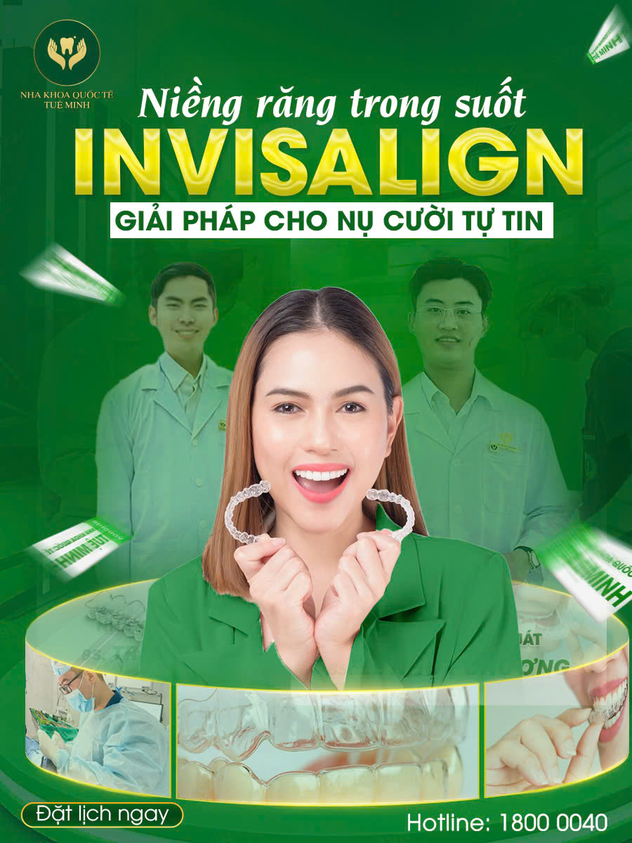 Invisalign chính là giải pháp chỉnh nha hiện đại, thẩm mỹ đã và đang được nhiều khách hàng tin tưởng lựa chọn Nha Khoa Quốc Tế Tuệ Minh . Liên hệ ngay để được tư vấn miễn phí và bắt đầu hành trình kiến tạo nụ cười rạng rỡ, tự tin cùng đội ngũ chuyên gia giàu kinh nghiệm.